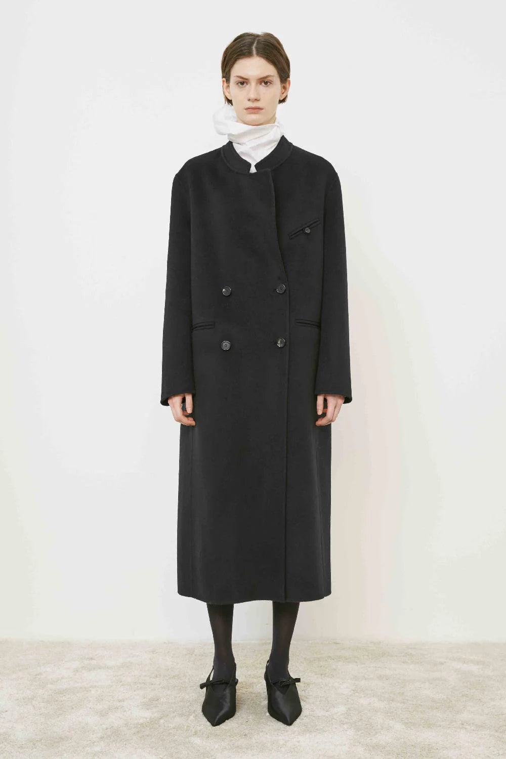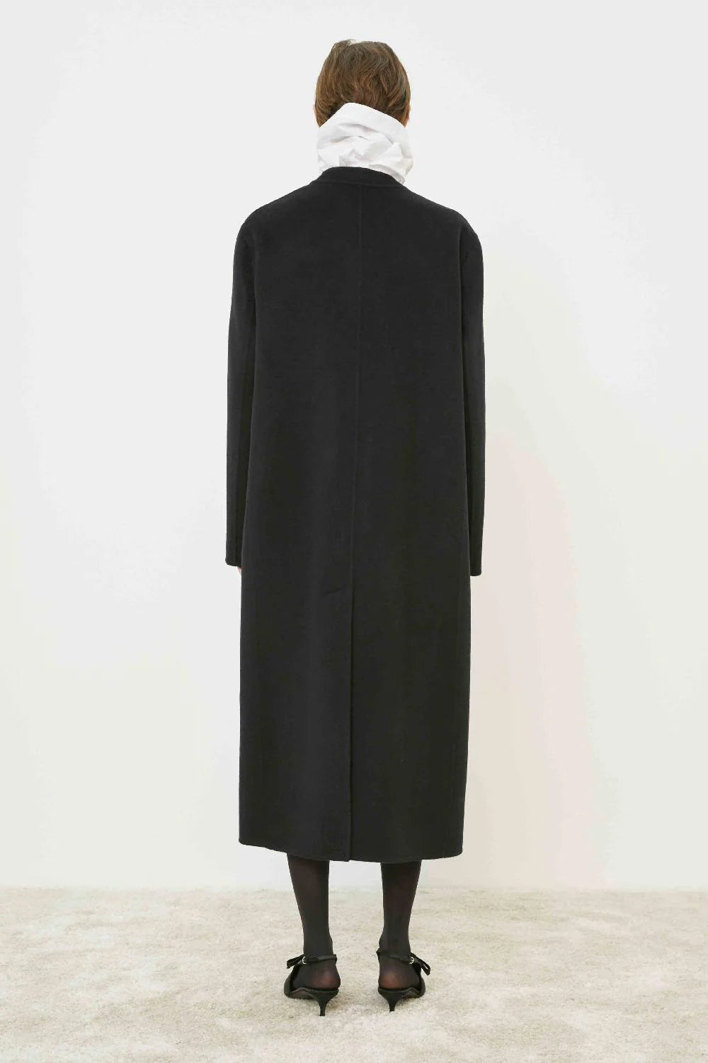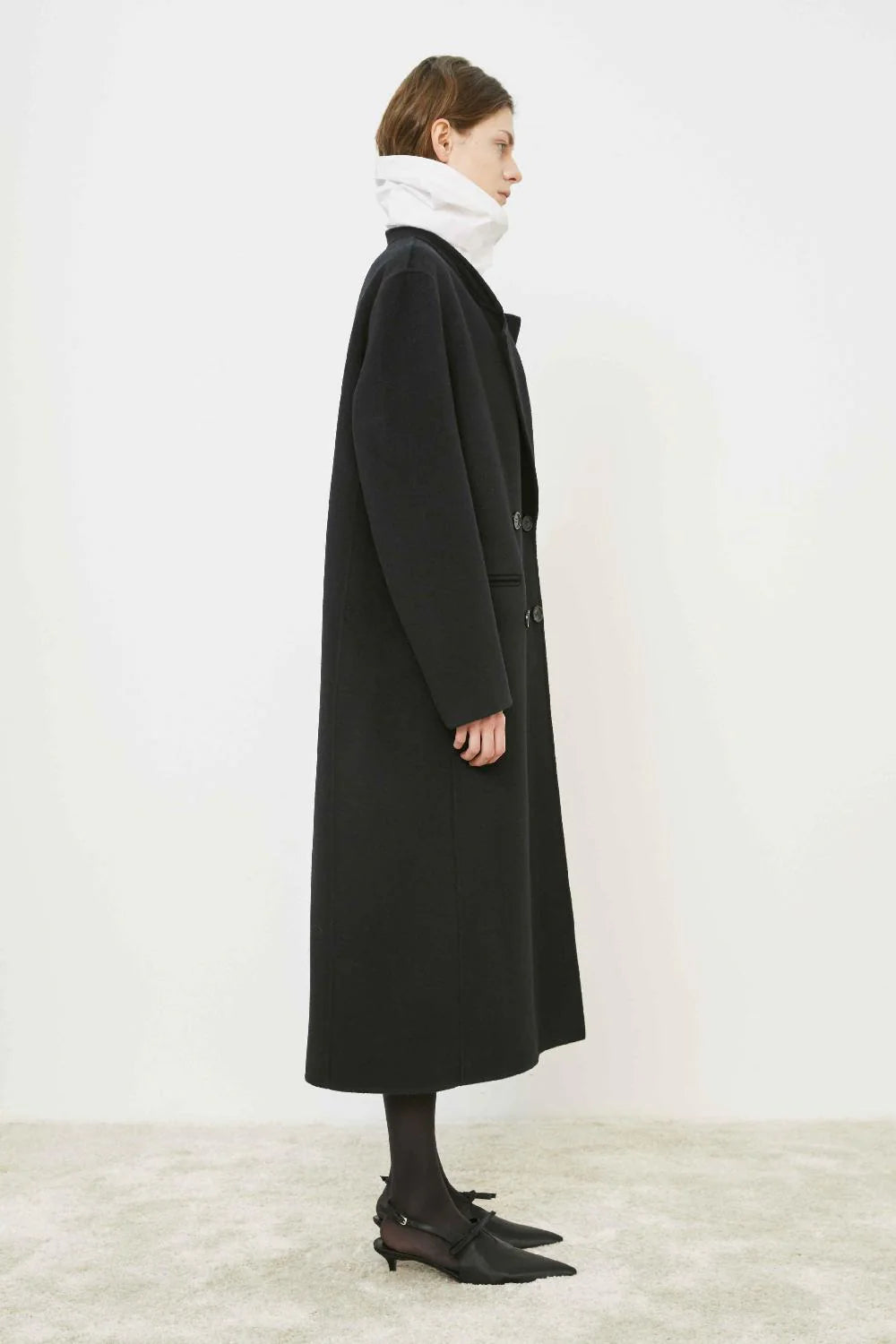 Abrigo midi de doble botonadura que combina elegancia clásica con un toque contemporáneo. Destaca por sus mangas amplias con hombros caídos que crean una silueta fluida y sofisticada. Cuenta con bolsillos de ribete en la parte delantera para mayor funcionalidad y un cuello trasero que añade detalle de diseño. Sin forro interno, perfecto para capas versátiles. Su largo midi lo convierte en una pieza versátil que transita sin esfuerzo entre el día y la noche, complementando cualquier guardarropa de estilo refinado.