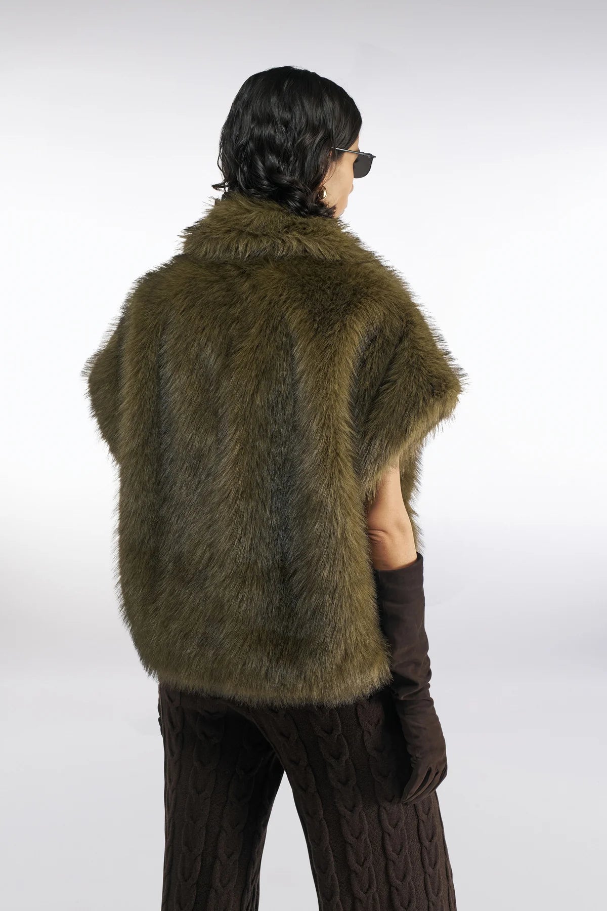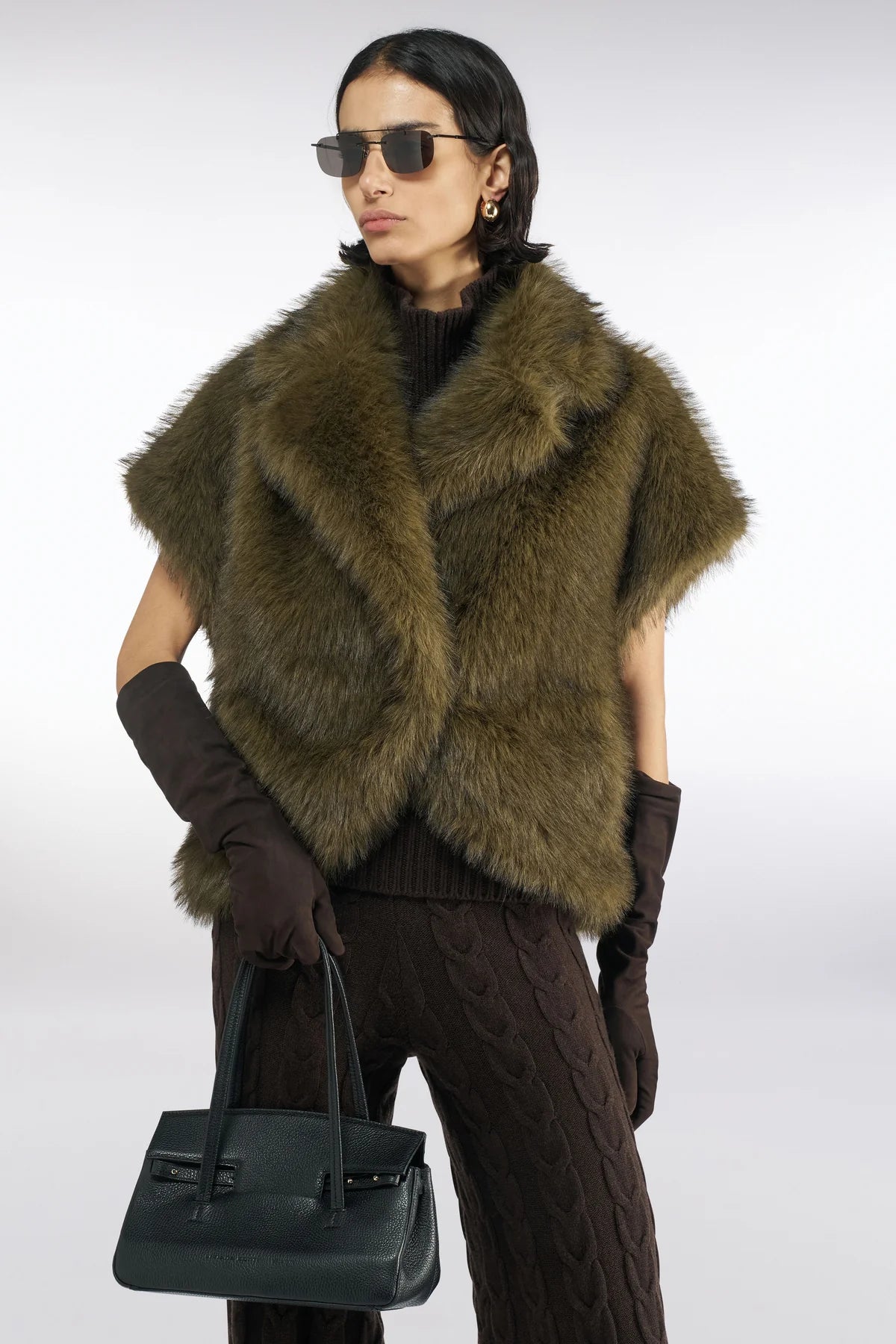 La capa ALYN, confeccionada en piel sintética, destaca por su diseño sin mangas que aporta un aire contemporáneo y sofisticado. Su solapa elegante y cierre oculto garantizan un acabado pulido y discreto, ideal para combinar con cualquier outfit que busque una nota de distinción y modernidad. Perfecta para quienes valoran estilo y comodidad en una sola prenda.
