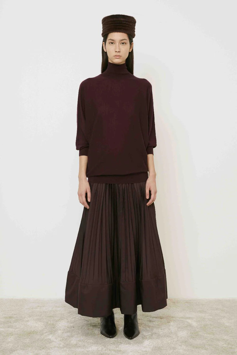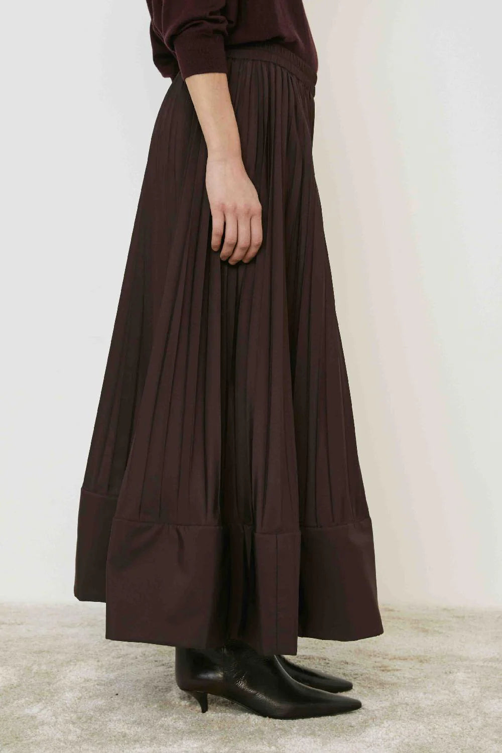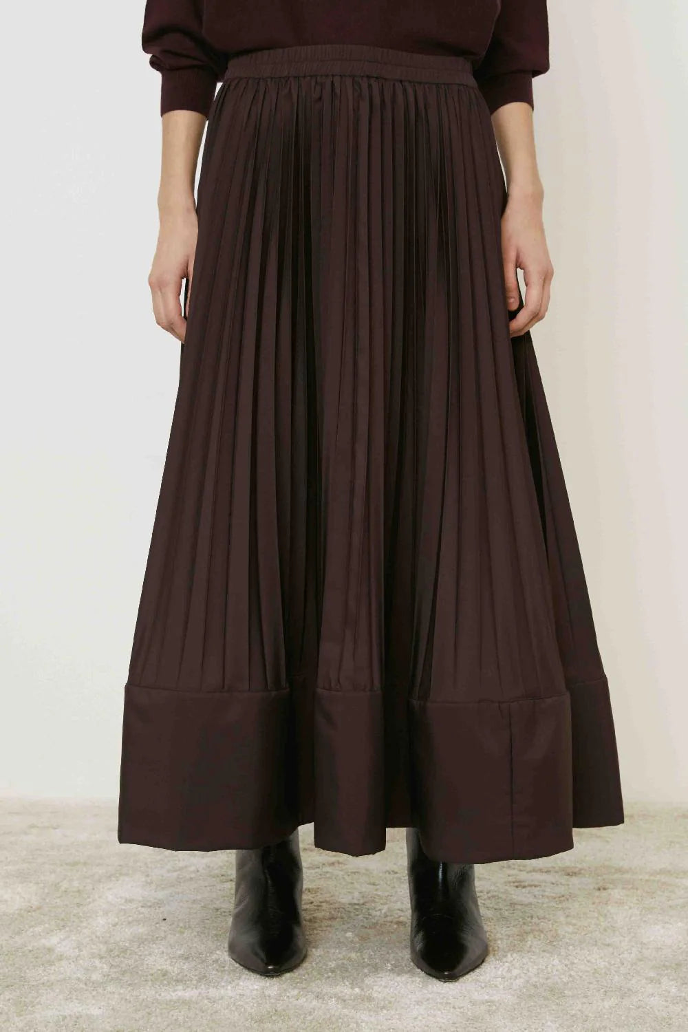 Esta falda plisada en tono burdeos con efecto globo combina elegancia y originalidad. Su diseño voluminoso realza la silueta con un toque sofisticado, ideal para ocasiones en las que deseas destacar con estilo. La textura plisada añade movimiento y sofisticación a tu look, haciendo de esta prenda un imprescindible para un armario moderno y exclusivo.