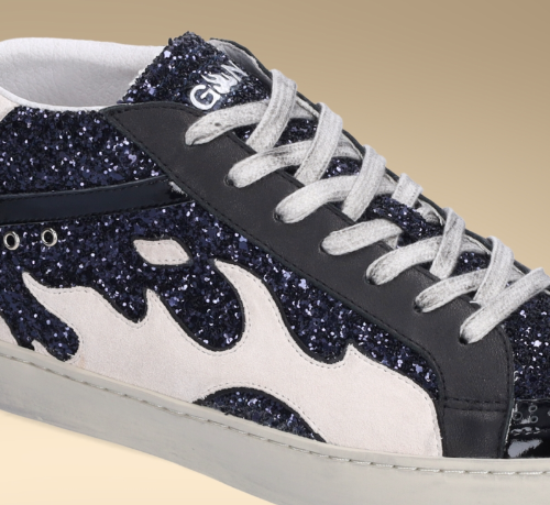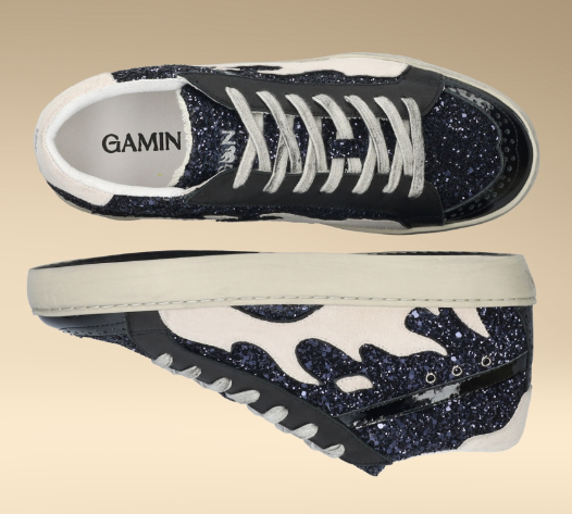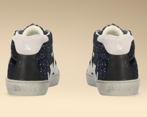 GAMIN EUPHORIC: Deportivas que fusionan elegancia y dinamismo. Diseño sofisticado con brillos en tonalidades azules y negro que crean un efecto visual cautivador. El toque de blanco complementa la silueta tipo botín, elevando el estilo deportivo a un nivel más refinado. Perfectas para quien busca destacar sin renunciar al confort y la versatilidad de un calzado deportivo contemporáneo.