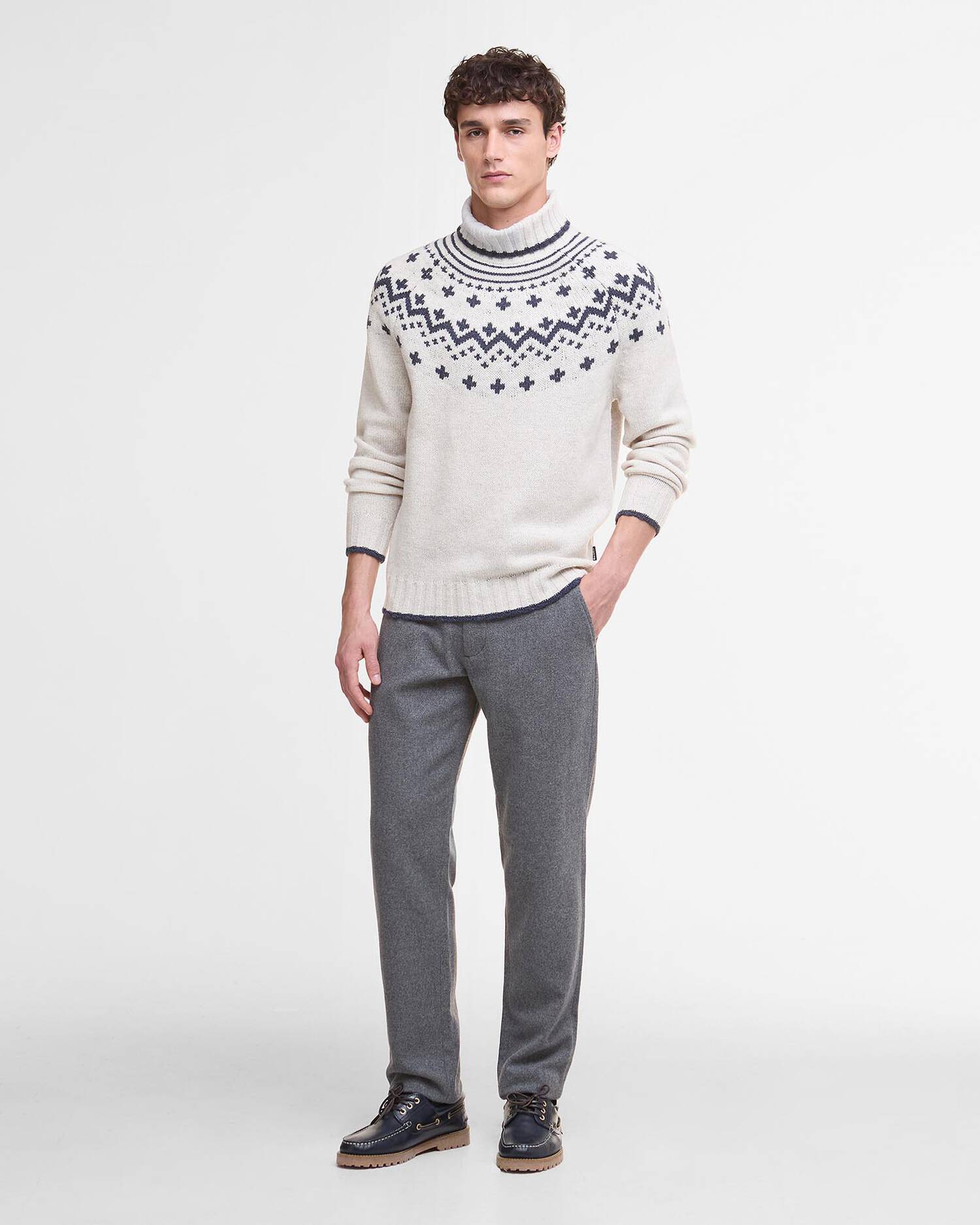 El jersey Barbour Hewton Fair Isle combina elegancia clásica con funcionalidad moderna. Su distintivo patrón Fair Isle en la parte delantera aporta carácter y sofisticación, mientras que el cuello alto proporciona calidez y protección en días fríos. Las mangas largas completan un diseño versátil, perfecto para crear looks refinados tanto en entornos casuales como más formales. Una prenda esencial que trasciende las tendencias, ideal para quienes valoran la calidad y el estilo atemporal.